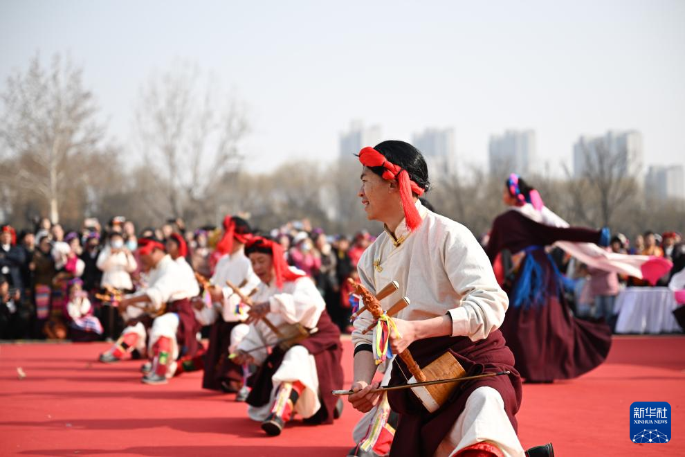 1月17日,來自西藏自治區昌都市基層文藝團體的演員在西安大明宮國家遺址公園演唱歌曲。 [詳細]