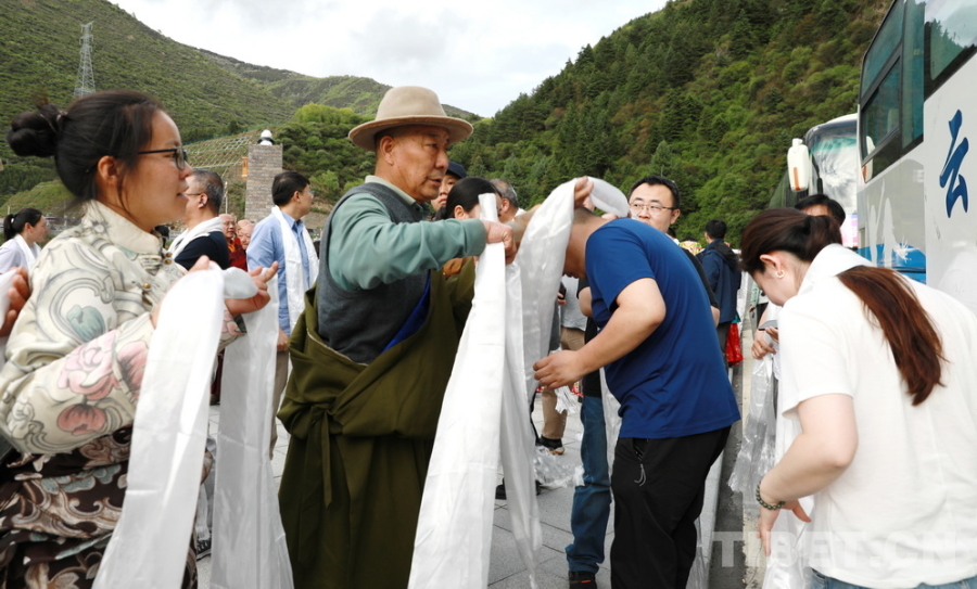 圖為5月15日,部分參加“同心·共鑄中國心”2025阿壩行大型公益活動的醫務志愿者抵達四川省阿壩州馬爾康市。馬爾康市群眾向醫務志愿者們敬獻哈達 攝影:劉莉