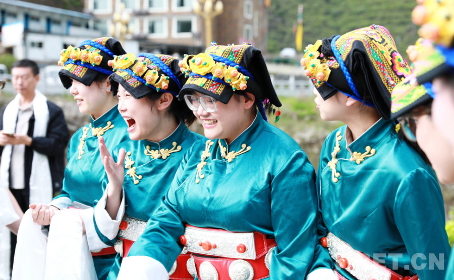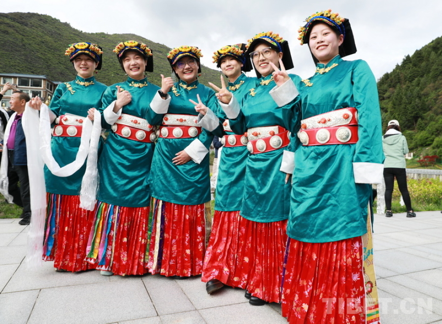 圖為身著嘉絨藏族盛裝的四川省阿壩州女孩們迎接“同心·共鑄中國心”大型公益活動醫務志愿者們的到來 攝影:劉莉