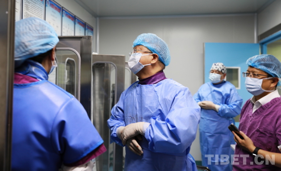 圖為首都醫科大學附屬北京安貞醫院心內科副主任、主任醫師陰赪茜(中)趕赴阿壩州人民醫院手術救治急性心?;颊?,術前查看有關手術器材 攝影:劉莉