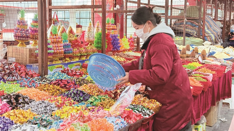 拉薩城投資產運營管理有限公司市場部部長平措次仁介紹,今年的240個攤位全部通過公平抽簽的方式分配,目的就是搭建便捷、實惠的采購平臺。截至目前,大部分商戶已順利入駐,僅有糖果、青稞苗等少數品類的商販還在陸續進場,歡迎消費者前往選購心儀年貨。